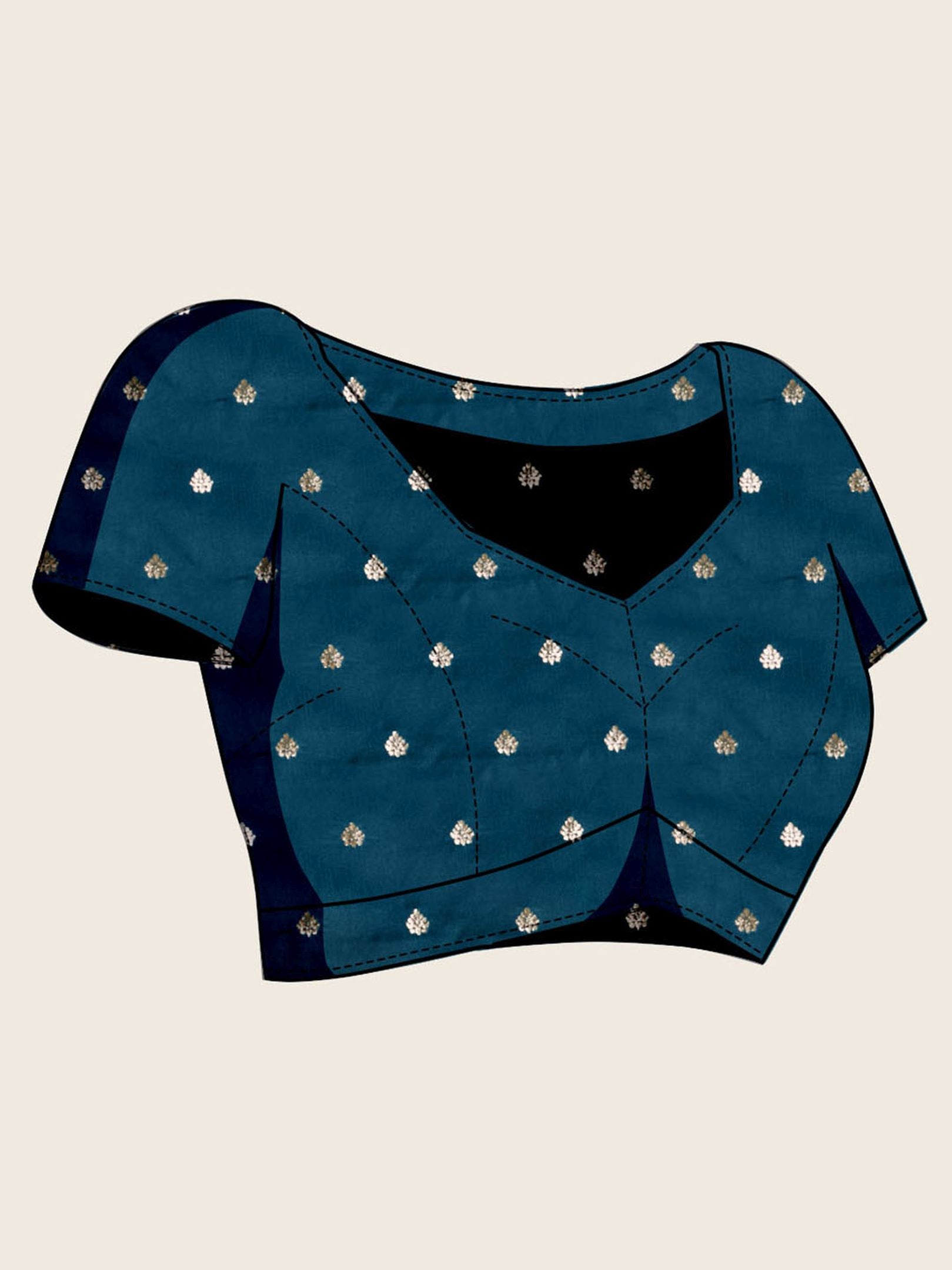 Blue Two-Tone Satin Silk Saree: Woven Jari Designer Work