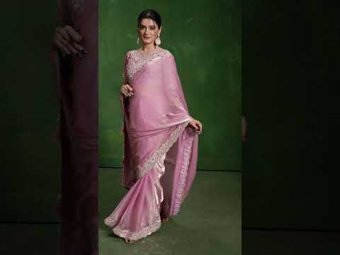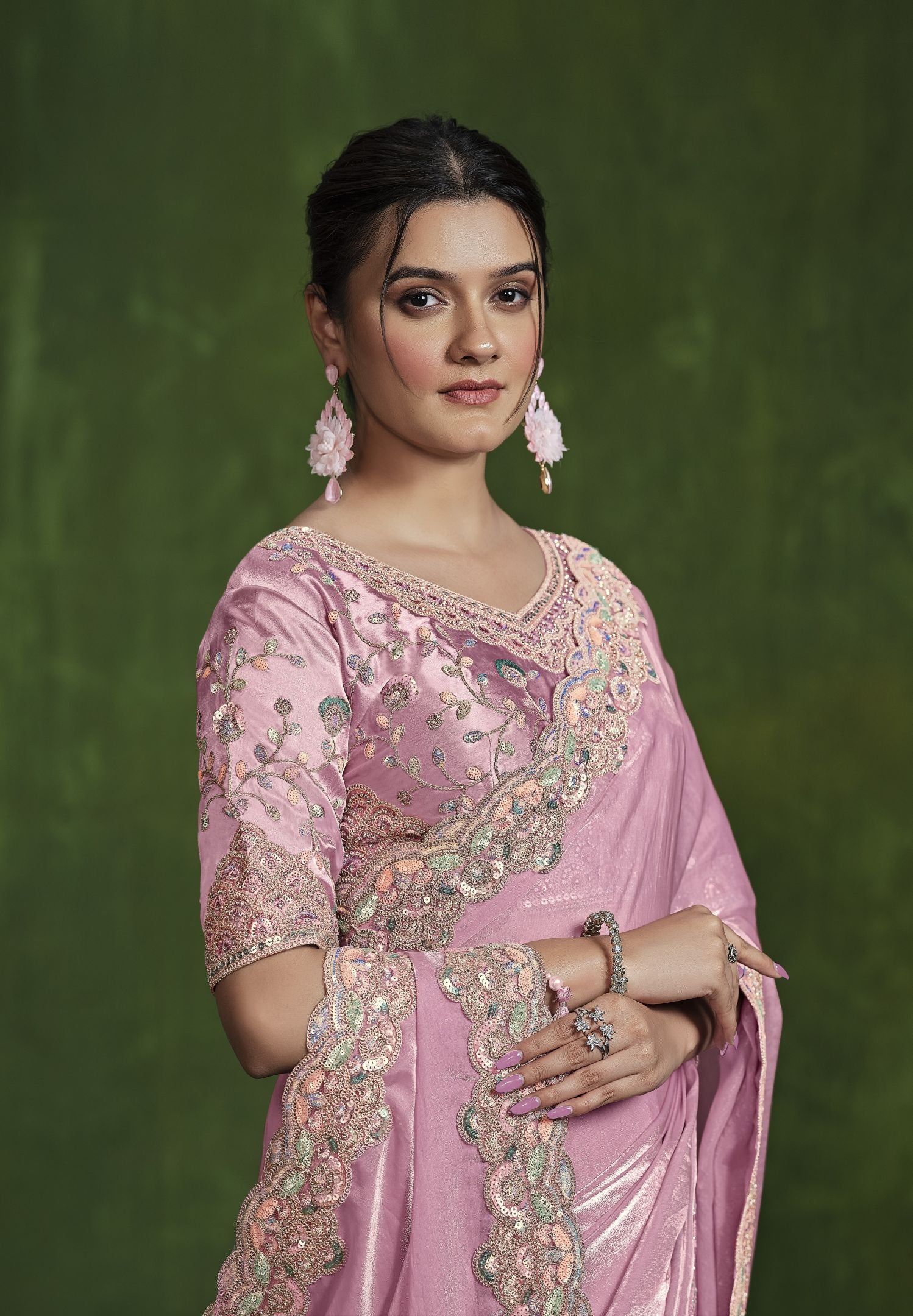 Pink 2-Tone Satin Silk Saree: Sequence Handwork, Stitched Blouse from the Ranjhana Collection