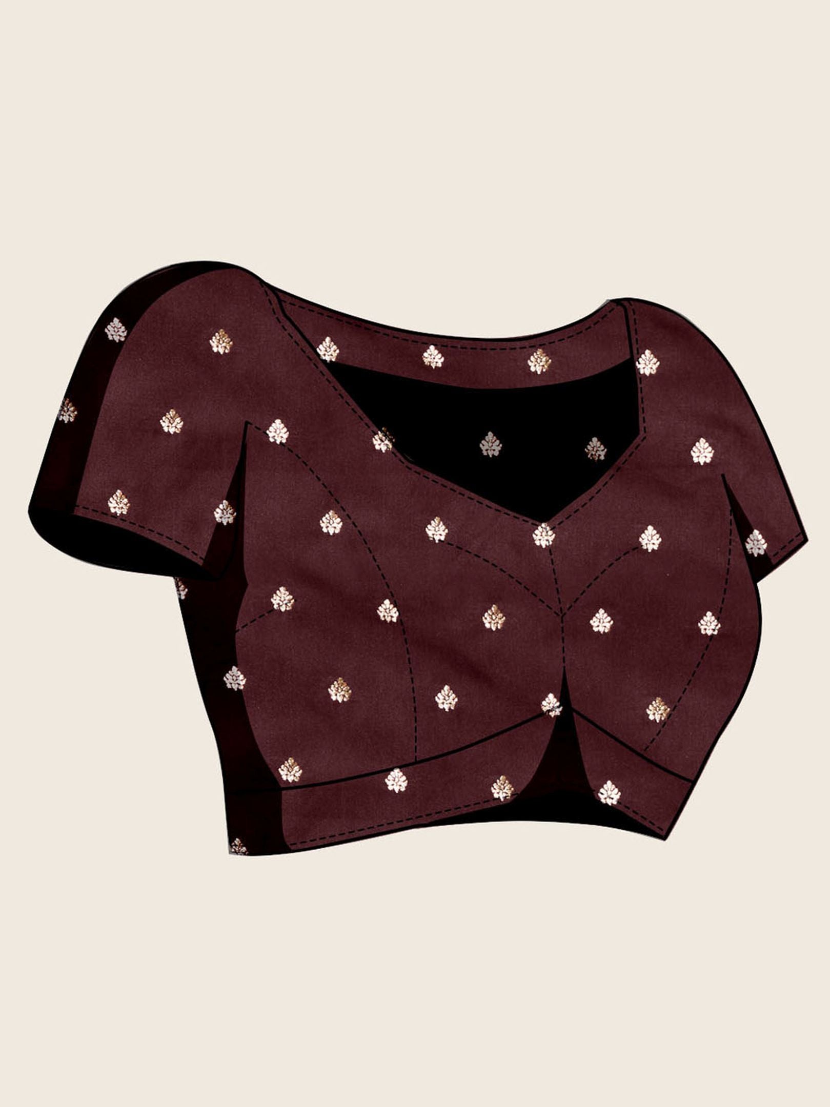 Wine Two-Tone Satin Silk Saree: Woven Jari Designer Work